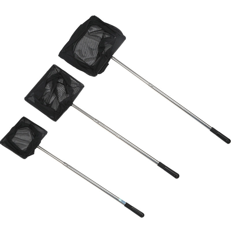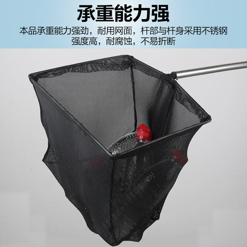 不锈钢可伸缩捞鱼网鱼抄3D虾捞鱼缸用抄网鱼捞隔离伸缩杆方形吸盘