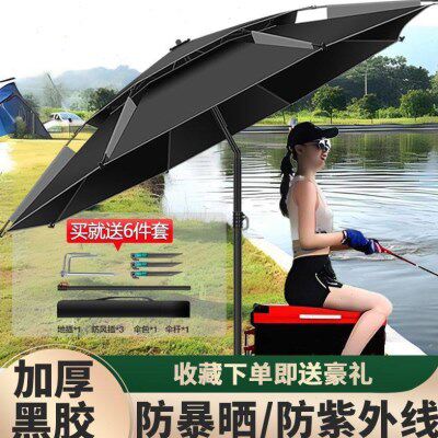 淘钓鱼伞加厚防雨防风暴雨防紫外线垂钓遮阳黑胶2.4米双层折叠万向