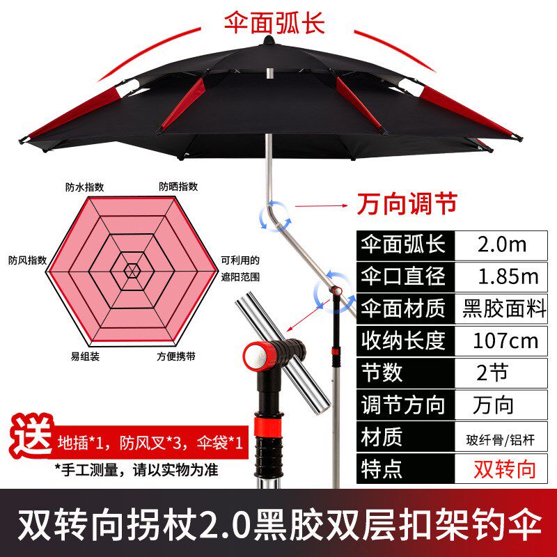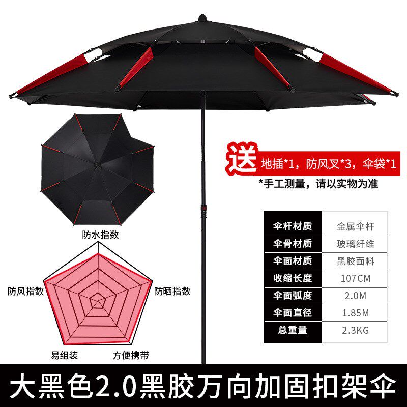淘钓鱼伞加厚防雨防风暴雨防紫外线垂钓遮阳黑胶2.4米双层折叠万向
