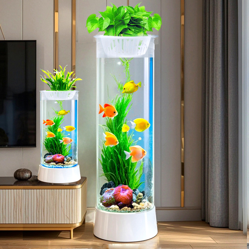 天猫鱼缸客厅小型2025新款圆柱形落地立式免换水生态圆形金鱼缸