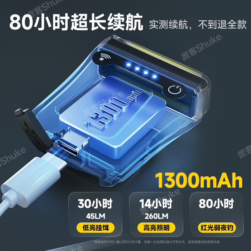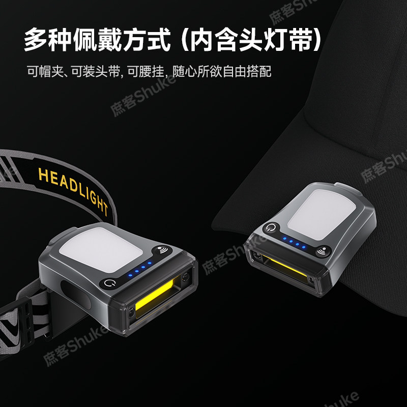 天夜钓头灯超长续航钓鱼户外专用感应帽夹灯强光超亮充电头戴夹帽