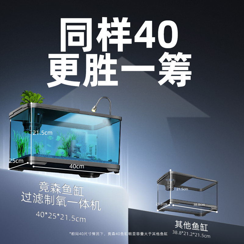 淘暗黑鱼缸小型客厅水晶桌面专用造景家用斗鱼鱼缸自循环恒温玻璃缸