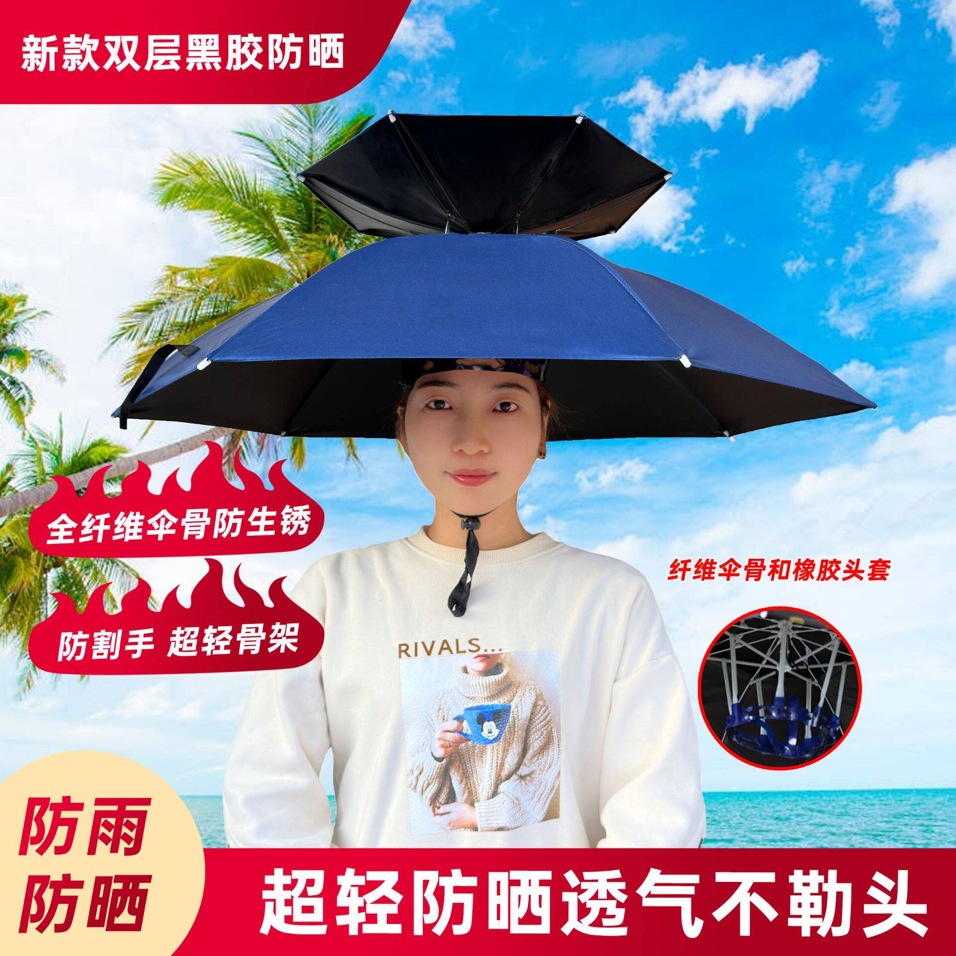 淘宝2024新款雨伞帽双层头戴遮阳伞防晒防雨折叠户外大号钓鱼伞帽