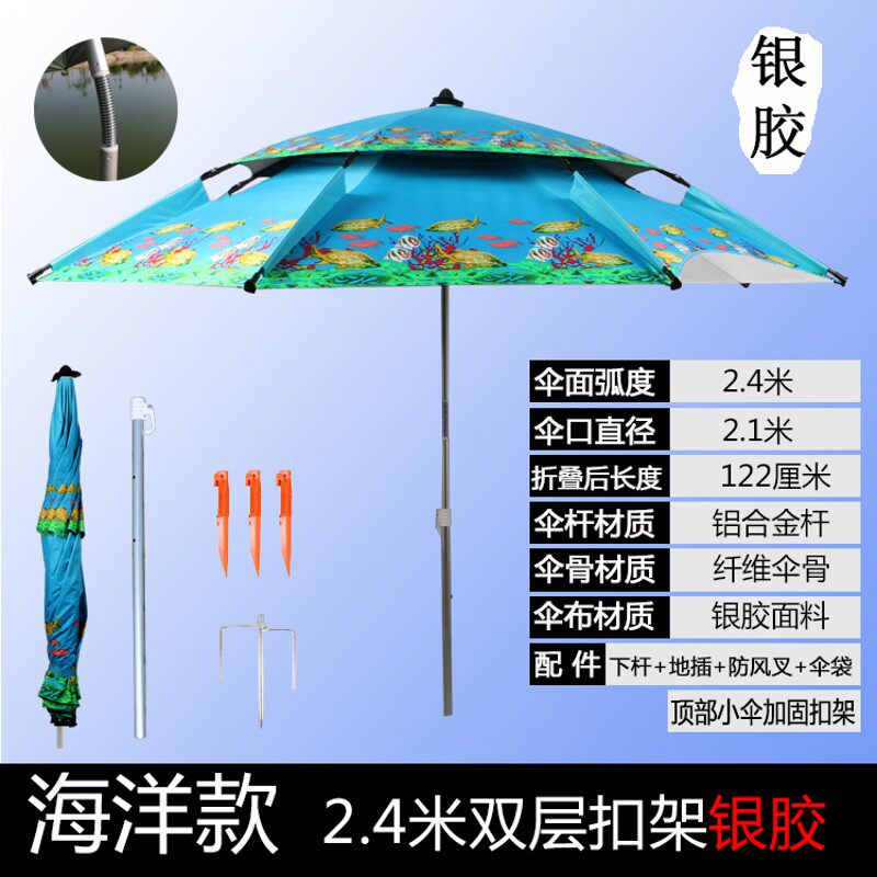 淘小鱼儿钓鱼伞2米2.4米双层万向防雨钓伞钓鱼雨伞遮阳伞垂钓太阳伞
