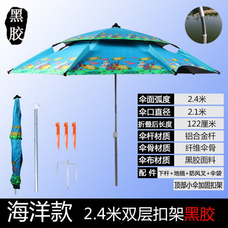 淘宝戴威营海洋钓鱼伞2米折叠万向黑胶钓伞2.4米双层加固防雨晒遮阳伞