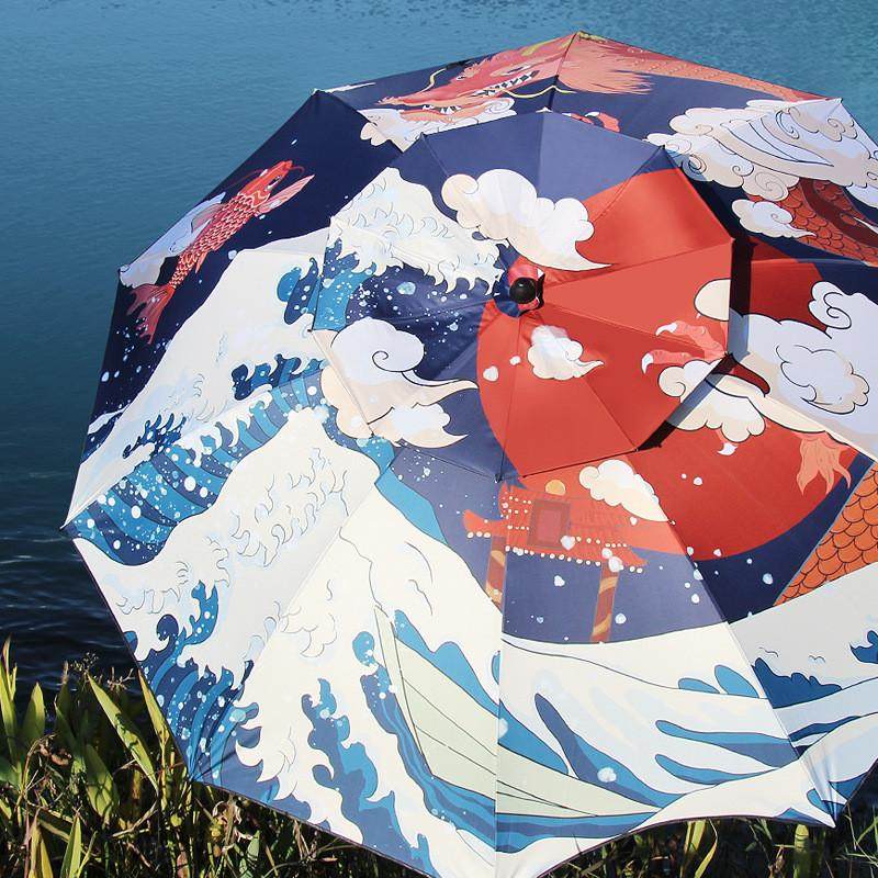 淘宝垂钓伞新款数码印遮阳透气双层钓伞浮世绘台防风0透光钓鱼伞现货
