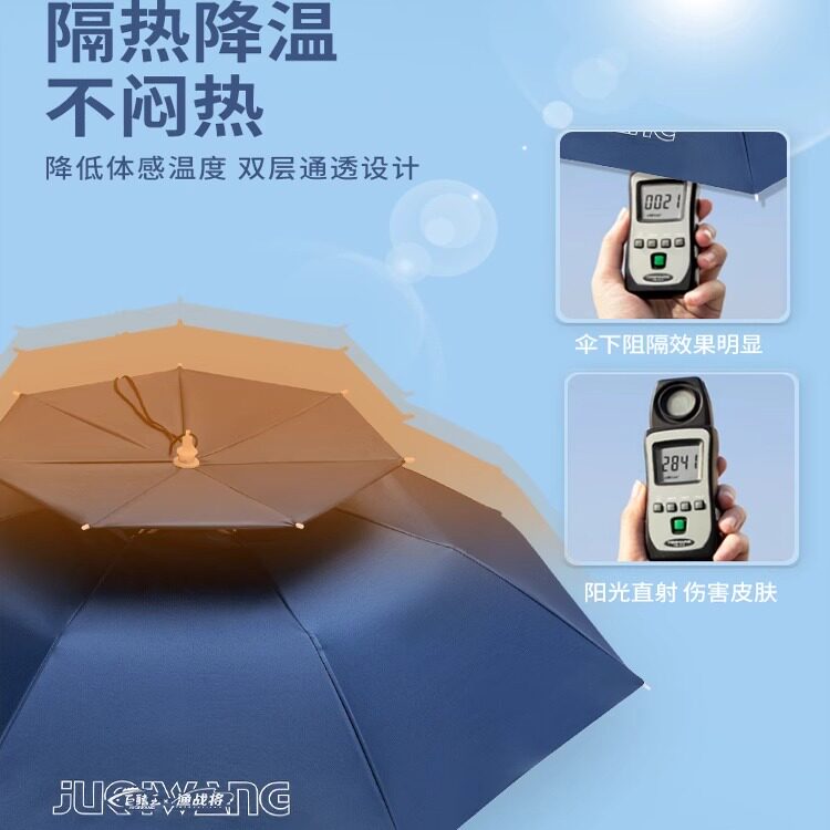 淘头戴式伞帽户外钓鱼遮阳伞双层大号可折叠野钓专用便携式头顶伞
