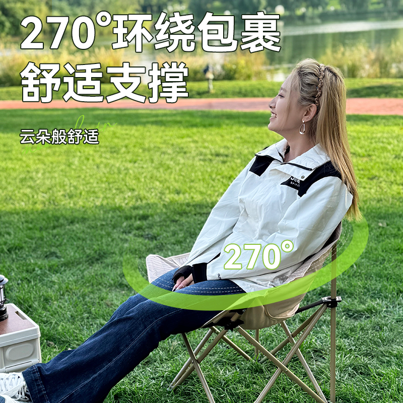 户外折叠月亮椅超大加宽露营椅写生椅沙滩椅钓鱼沙发椅野餐休闲椅