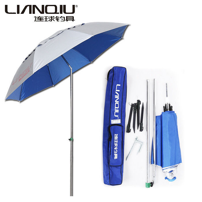 连球钓鱼伞AN-3180是一款专为垂钓爱好者设计的实用遮阳伞,伞面直径达1.8米,采用高强度短塑骨架结构,轻便稳固,抗风性能优异。伞面选用优质蓝色牛津布材质,具备出色的防紫外线与防水功能,有效遮挡烈日与小雨,为钓者提供舒适阴凉空间。伞杆高度可调节,适配不同地形与坐姿需求,底部配有地钉固定孔,增强户外使用稳定性。整体设计兼顾便携与耐用,收合后体积小,便于携带。无论是湖边、河边还是海钓,连球AN-3180都能成为您户外垂钓的理想伴侣,提升垂钓体验。