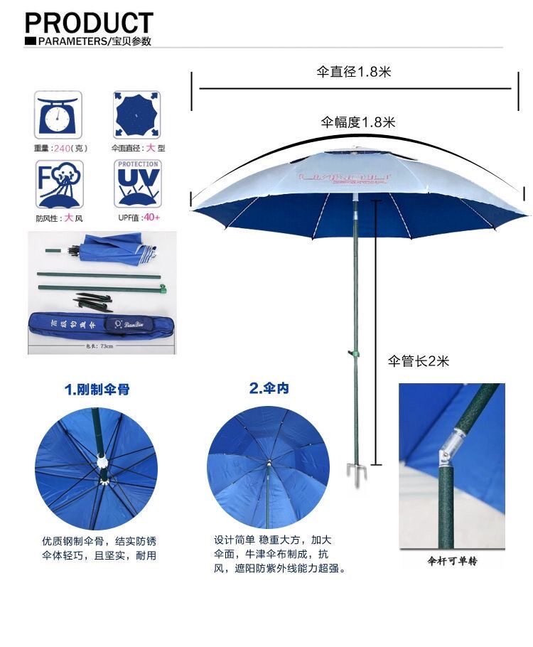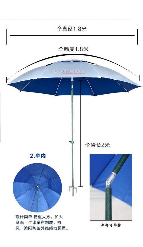 淘宝连球钓鱼伞AN-31801.8米短塑牛津伞连球太阳伞遮阳垂钓钓伞蓝色