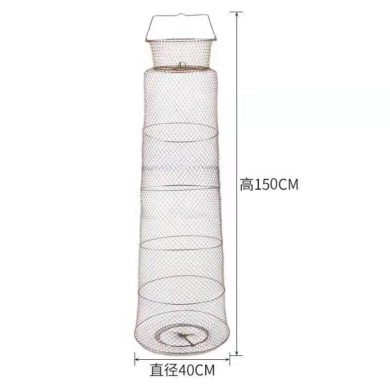 这款可折叠不锈钢钢丝鱼护是专为海钓爱好者设计的高效渔具。采用优质不锈钢钢丝编织而成,坚固耐用、抗腐蚀性强,适合在海水环境中长期使用。鱼护呈网状结构,透水性好,能有效保持渔获新鲜,同时防止鱼类逃脱。整体设计轻便紧凑,可快速折叠收纳,便于携带和存放,非常适合出海垂钓、岸钓或船钓使用。网口配有安全锁扣,确保装鱼时稳固可靠。无论是存放鲈鱼、石斑还是其他海鱼,都能轻松应对。是钓鱼人提升渔获管理效率的理想装备,兼具实用性与耐用性,深受钓友信赖。