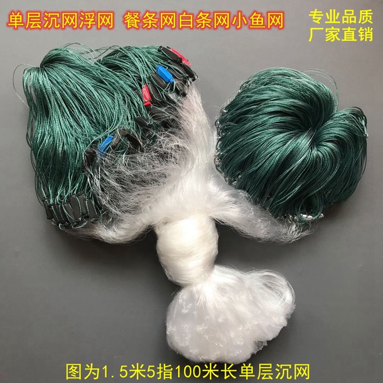 单层渔网粘网白条餐条专用小鱼网丝网沉网浮网捕鱼网5分67分1指高