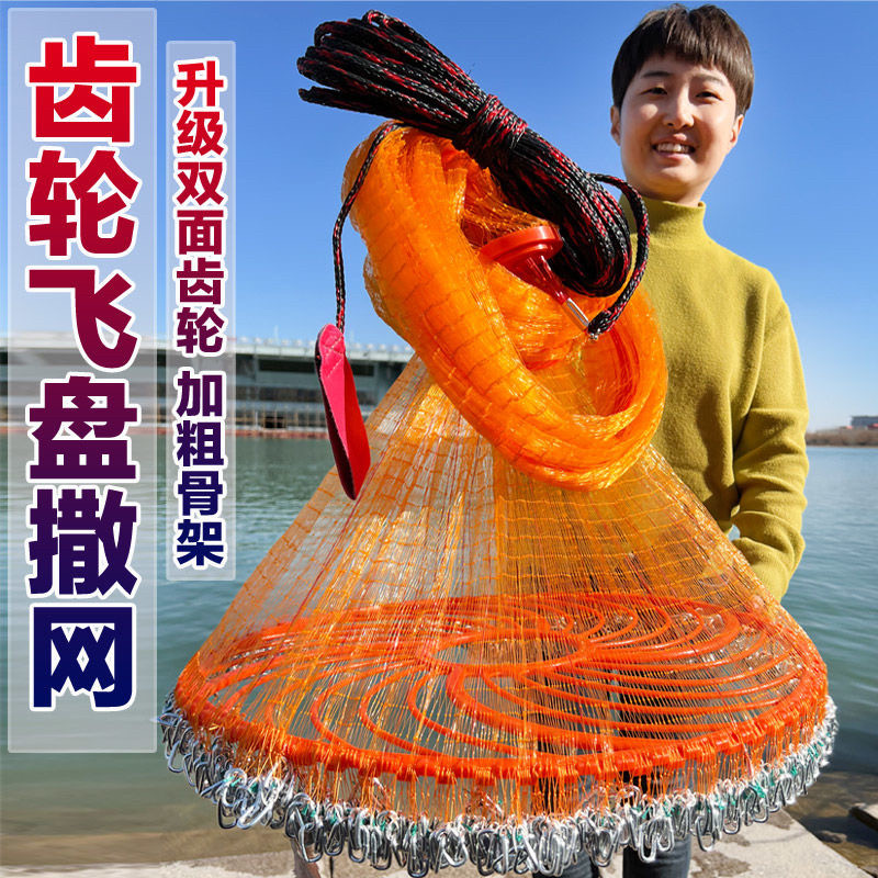 淘宝双面齿轮飞盘撒网软灰丝软黄丝大盘式飞盘撒网抛网渔网铁链捕鱼网