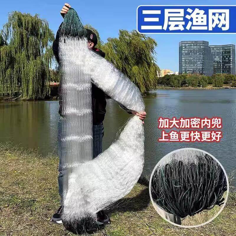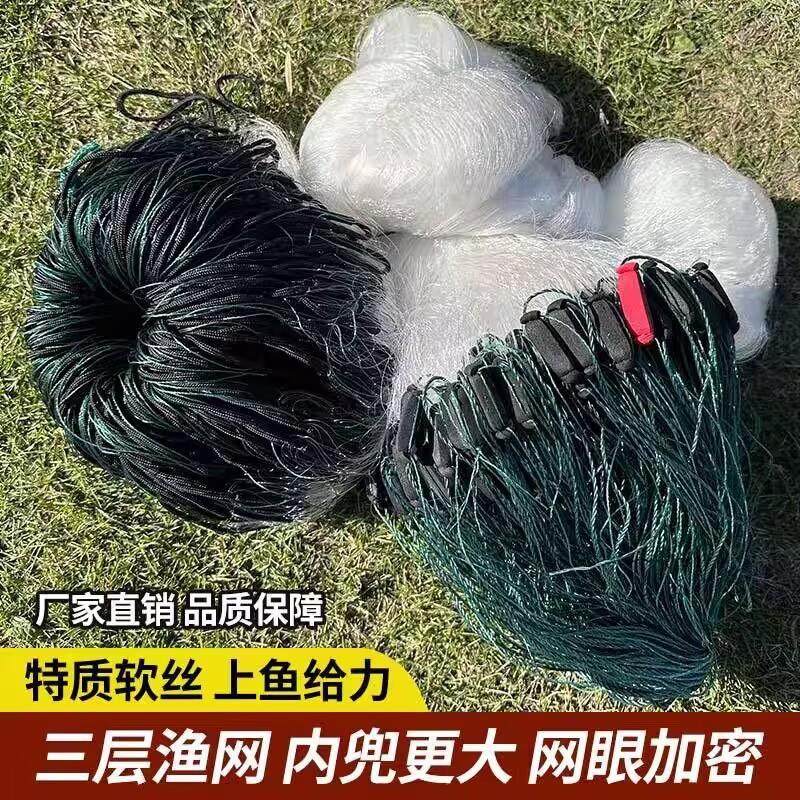 淘渔网粘网丝网小套三层沉网胶丝纲长坠挂子捕鱼网鲫鱼鲢鱼白条沾网