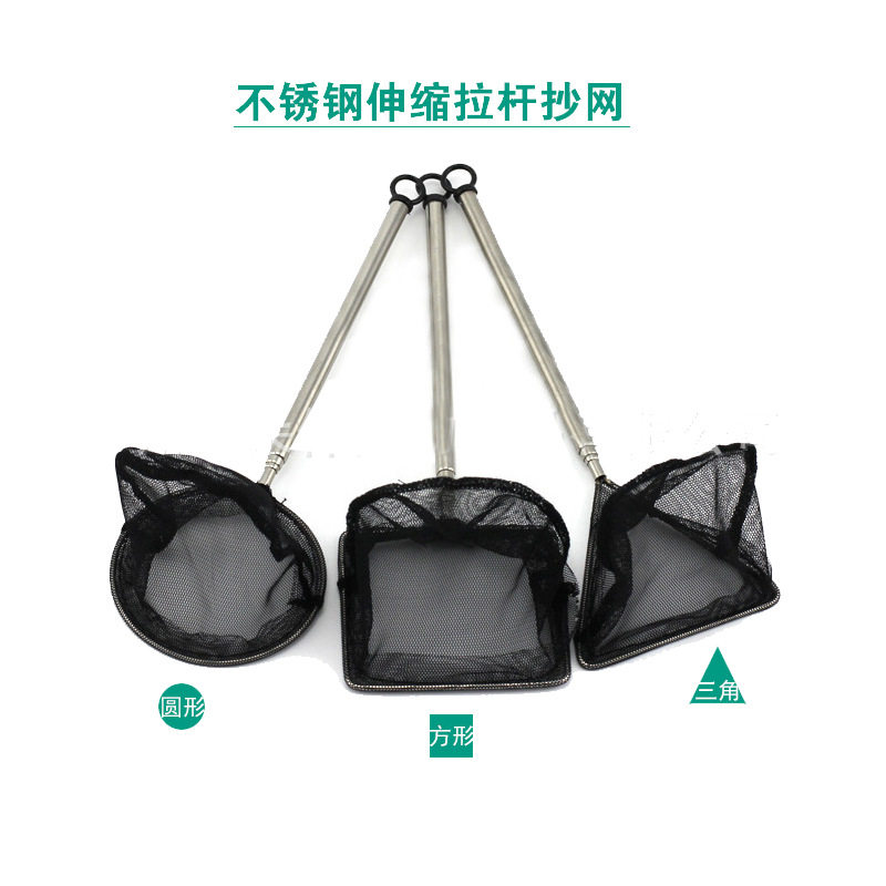 不锈钢可伸缩捞鱼网鱼抄3D虾捞鱼缸用抄网鱼捞隔离伸缩杆方形吸盘