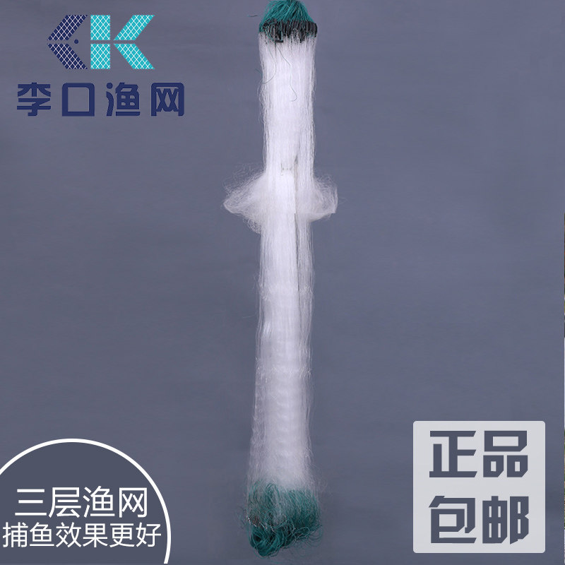 淘绿丝三层渔网1米1.2米1.5米2高2.5指3指3.5指4指捕鱼鲫鱼网沉网粘