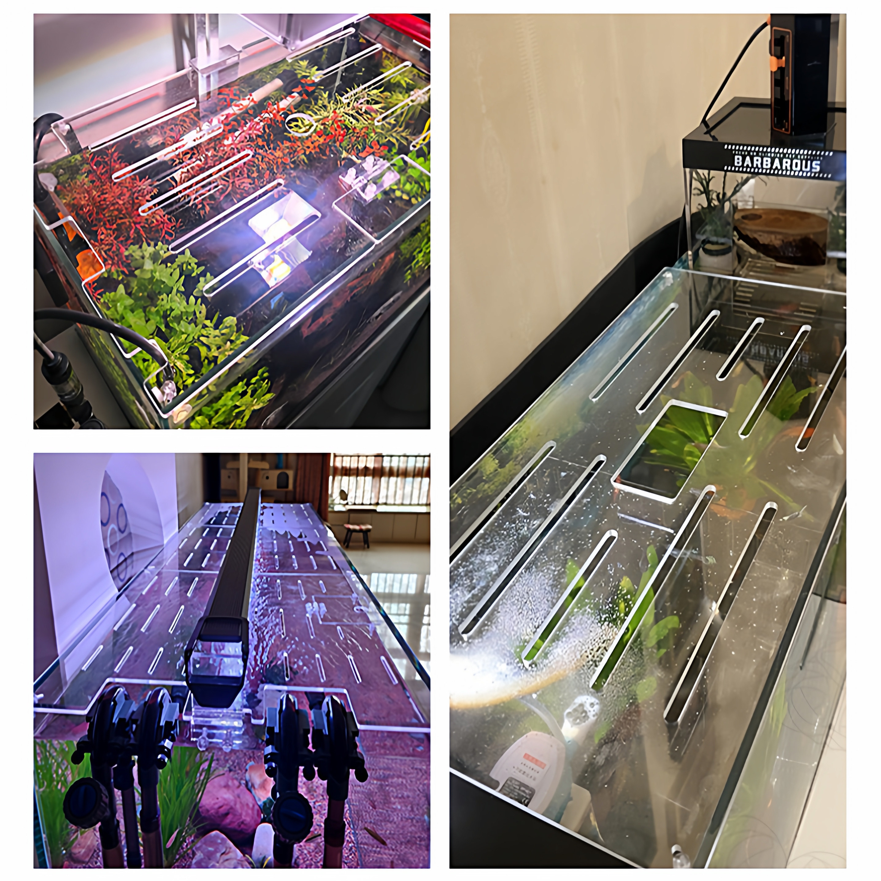 本款定制亚克力鱼缸专用盖板,专为雷龙鱼、乌龟等易跳缸或活动力强的水族宠物设计。采用高强度透明亚克力材质,轻便耐用、透光性好,不影响观赏效果。顶部配备精密防跳网,有效防止鱼类跃出或乌龟攀爬逃逸,保障安全。兼容上滤、侧滤系统,开孔精准,安装便捷,兼顾过滤功能与整体美观。盖板可依据鱼缸尺寸个性化定制,边缘打磨光滑,防水防霉,易于清洁维护。适用于家庭、办公室等多种场景,是兼顾安全性与实用性的理想水族配件,让您的爱宠安心生活,主人更省心。