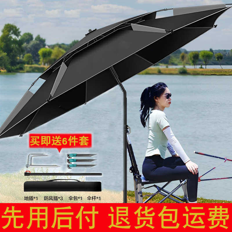 淘伞叔推荐钓鱼伞专用新款双层黑胶遮阳防晒抗风防雨防紫外线