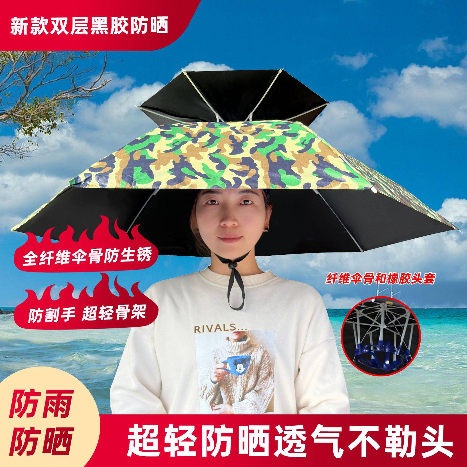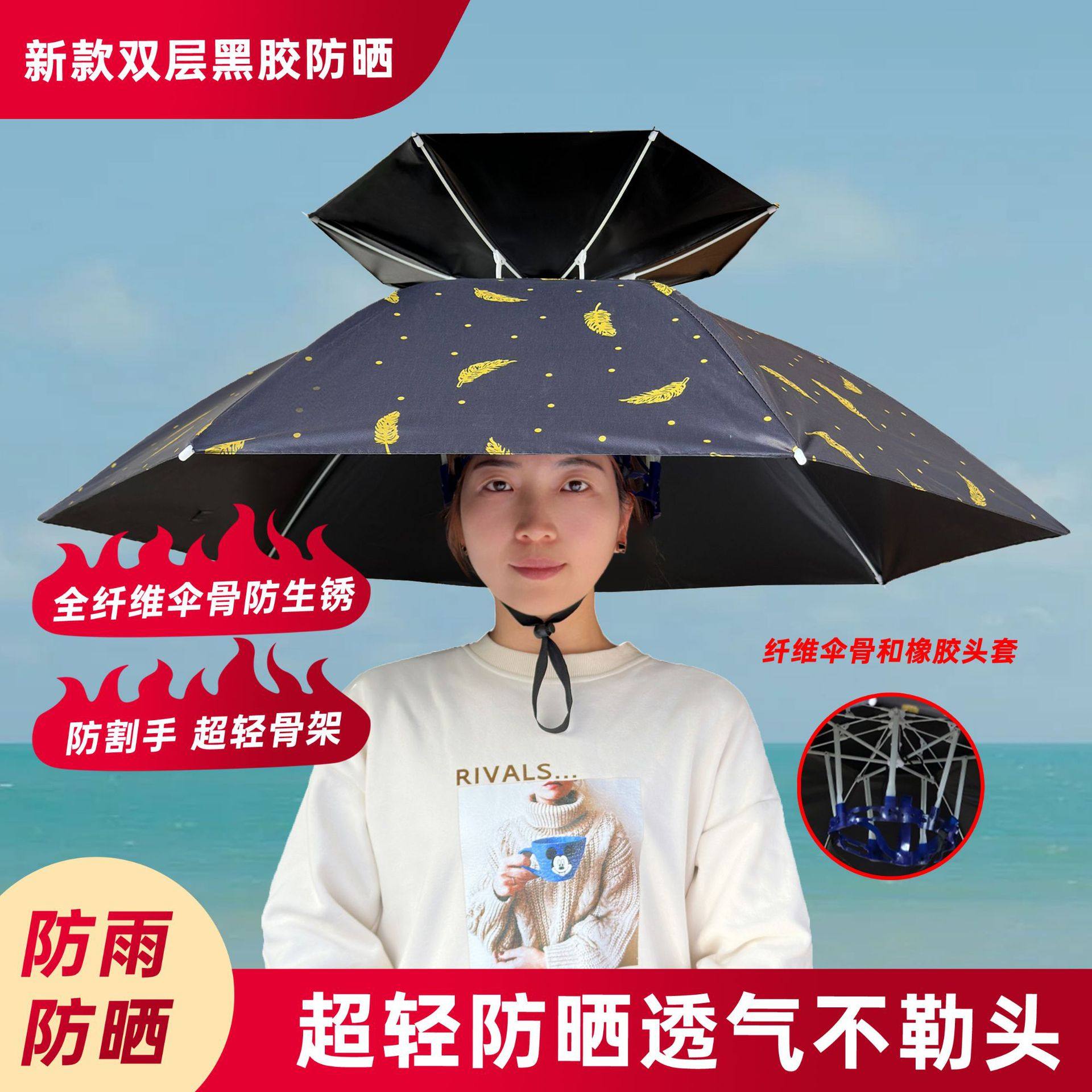 淘宝新款双层钓鱼伞帽头戴式雨伞防雨帽户外垂钓可折叠钓伞遮阳伞