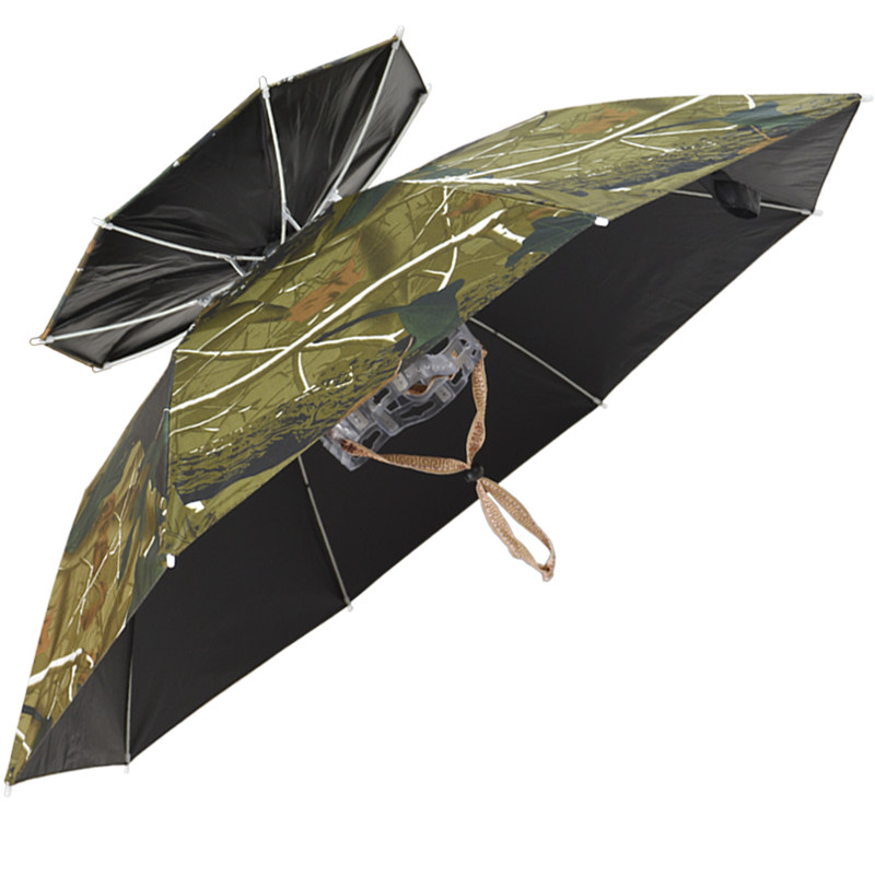 淘宝钓鱼伞帽头戴黑胶折叠晴雨u伞采茶帽环卫遮阳挡雨斗笠帽伞渔具垂