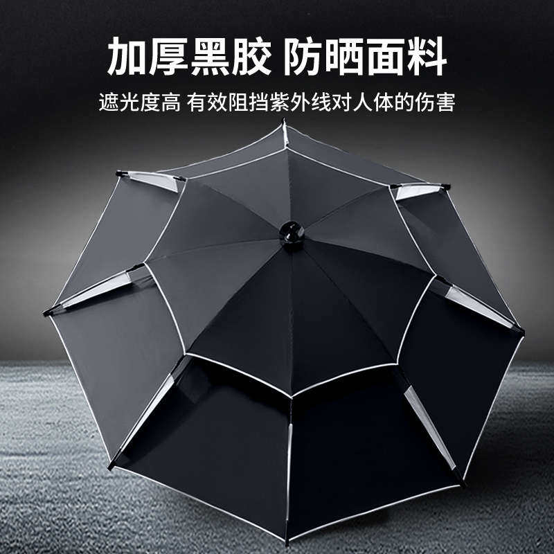 淘头戴伞钓鱼伞单层折叠黑胶遮阳伞户外头顶雨伞垂钓采茶帽子伞钓伞