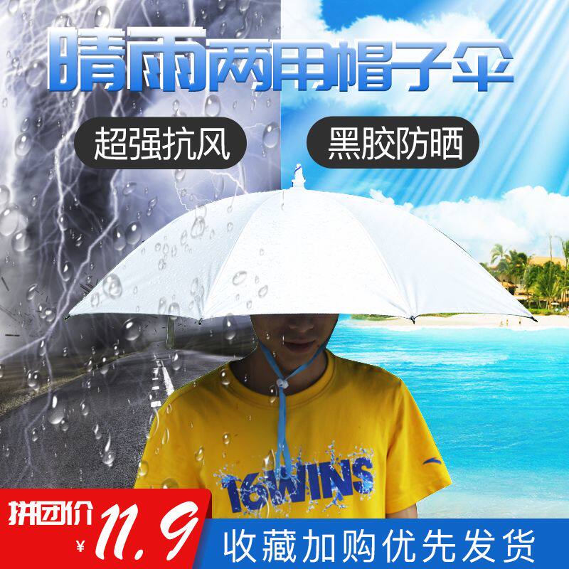 淘伞帽头戴雨伞帽子钓鱼头戴太阳伞户外采茶环卫防晒斗笠伞折叠大号