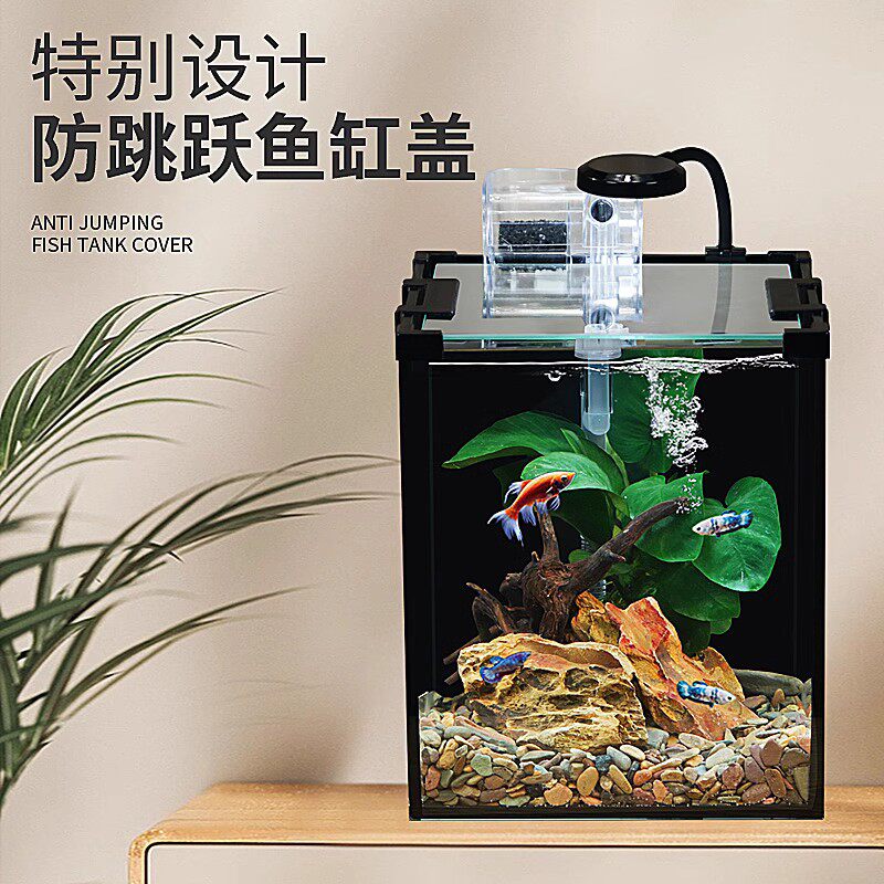 天猫超白玻璃鱼缸客厅家用斗鱼缸办公室桌面缸小型造景生态金鱼缸方缸
