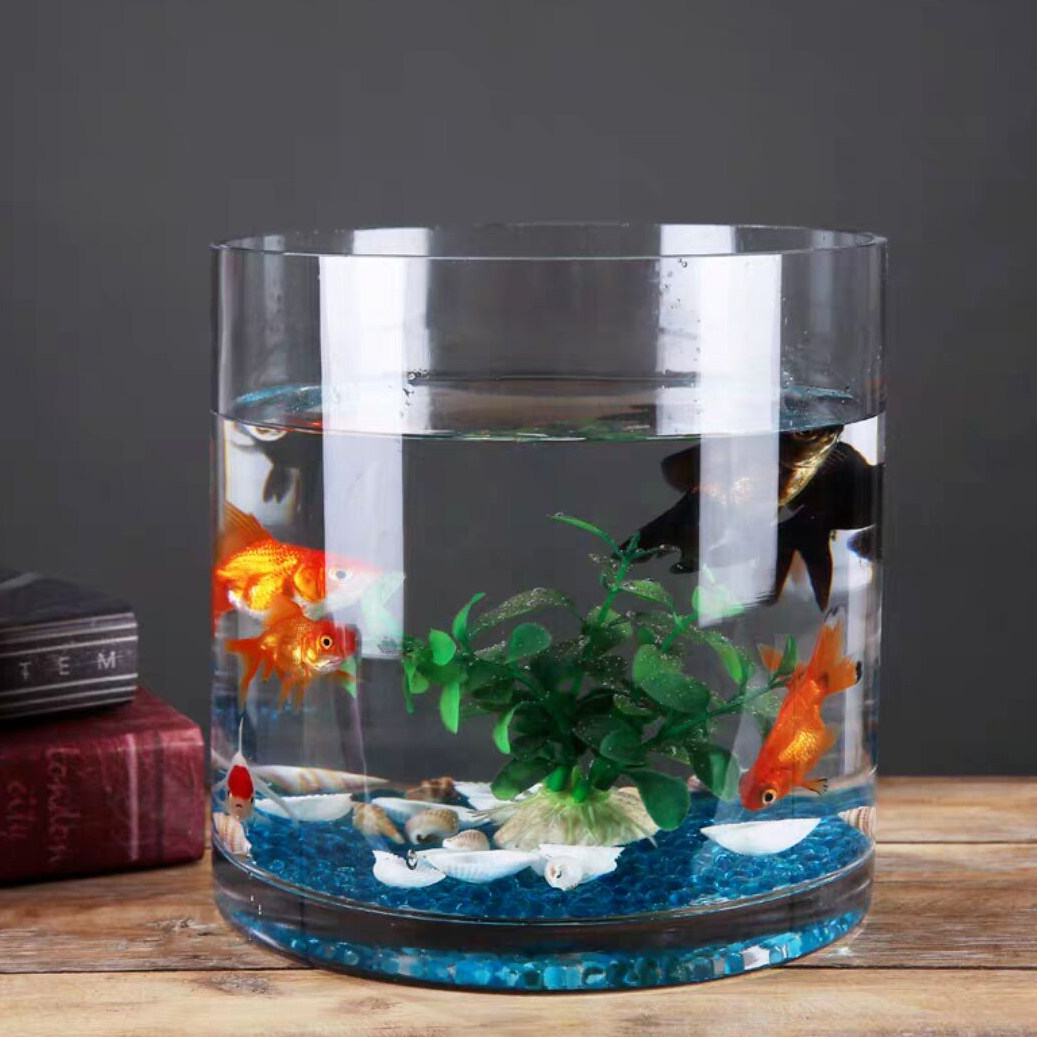淘宝超白加厚圆柱形口不割手直筒透明玻璃金鱼缸客厅大号落地水培桌面