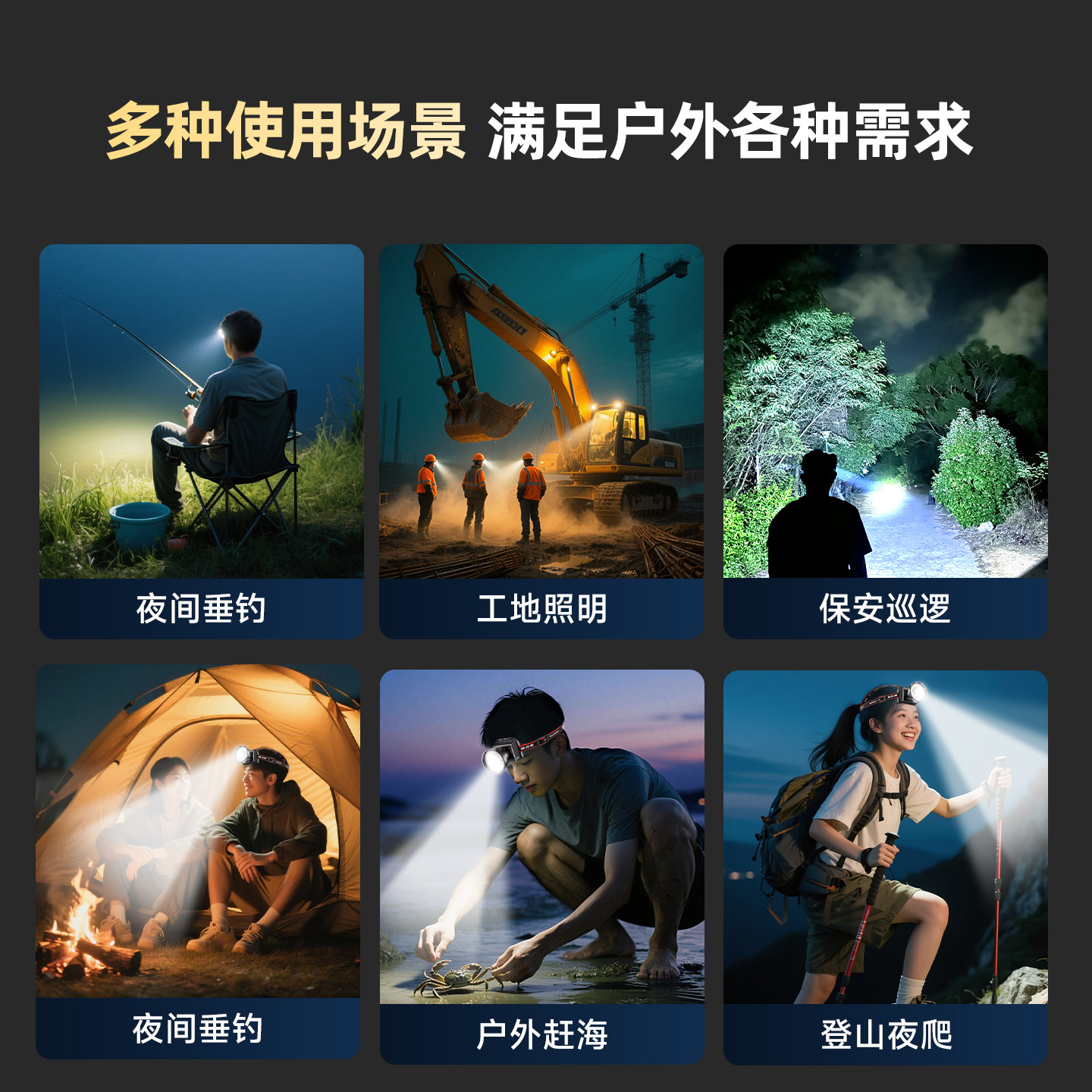 天头灯强光超亮充电感应野外钓鱼赶海专用户外照明黄光头戴式手电筒