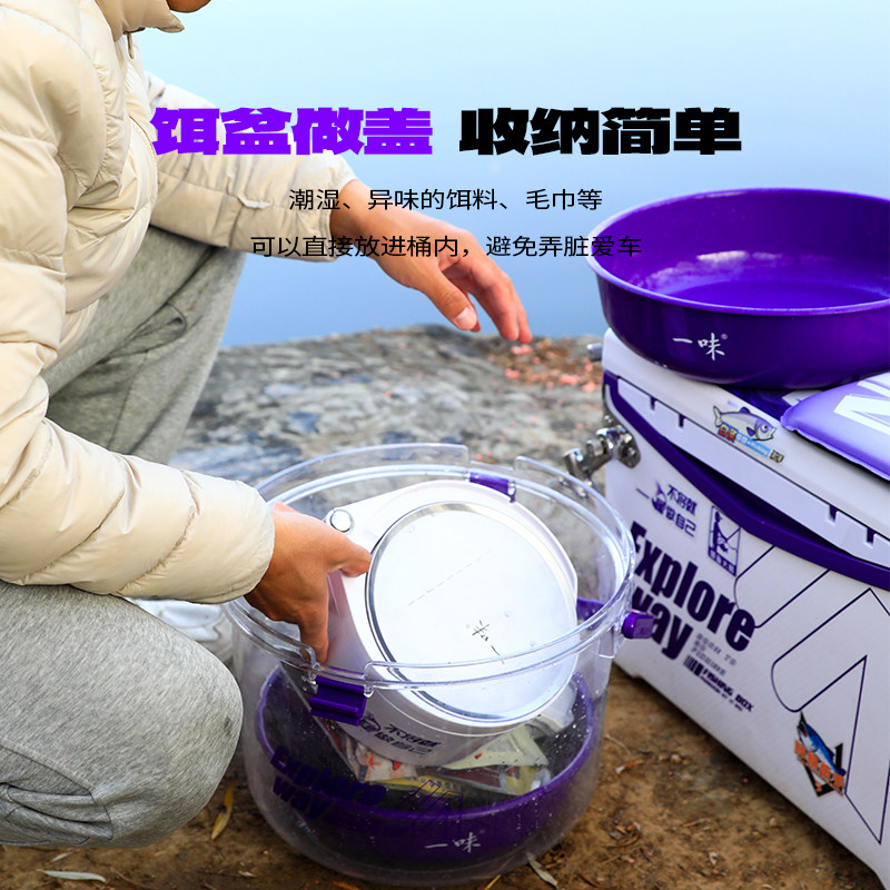 天猫一味新品拉鲫桶开饵盆套装加厚饵料桶抗摔多功能散炮桶钓鱼桶