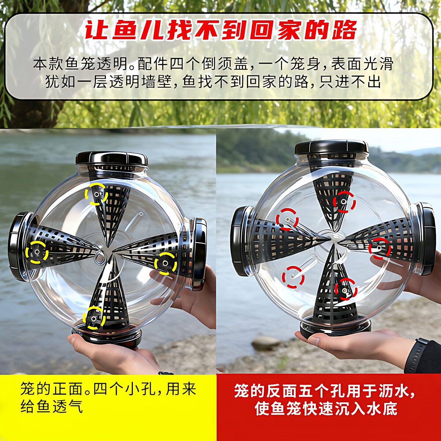 新型高透光全透明鱼虾蟹笼是一款革命性捕鱼工具,采用高强度透明高分子材料制成,透光率高达95%以上,几乎与水体融为一体,鱼儿难以察觉其存在。独特的单向入口设计,利用鱼类趋光性和探索习性,引导鱼虾蟹自然进入笼内,一旦入内便无法逃脱。笼体结构科学,通风透水,有效减少鱼体损伤,提升活体捕获率。适用于淡水、海水多种水域,操作简便,环保高效。无论是休闲垂钓还是小规模捕捞,这款“看不见”的捕鱼神器都能显著提升捕获效率,是渔具爱好者的理想选择。安全无毒,耐用抗腐,真正实现高效、生态、智能捕鱼。