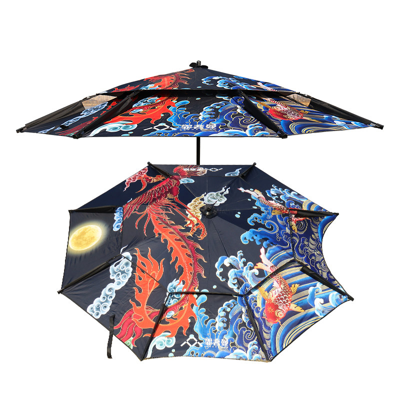 淘新款钓鱼伞帽头戴式雨伞折叠头带伞双层防晒户外垂钓遮阳钓伞