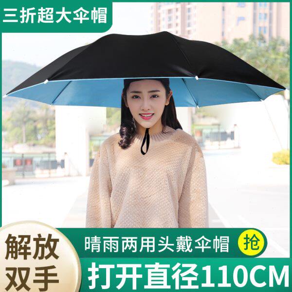 淘宝伞帽头戴伞黑胶钓鱼伞头顶式3折叠雨伞防晒防雨遮阳大号头带式伞