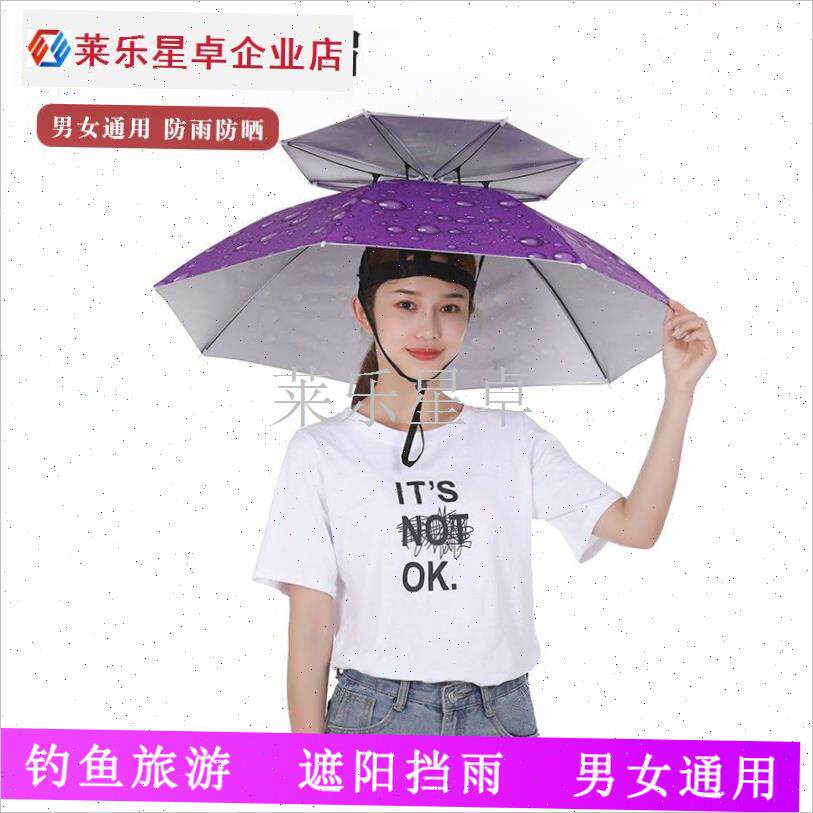 淘新款钓鱼伞帽头戴式雨伞折叠头带伞双层防晒户外垂钓遮阳钓伞