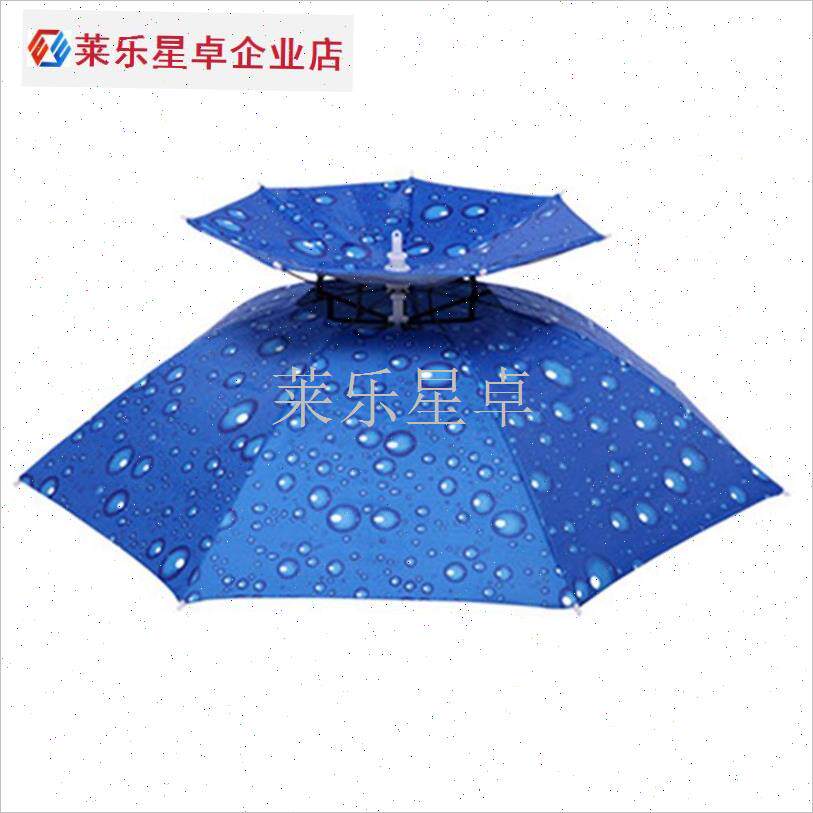 天双层防风防雨钓鱼伞帽头戴式雨伞防晒折叠头顶雨伞帽户外遮阳垂钓