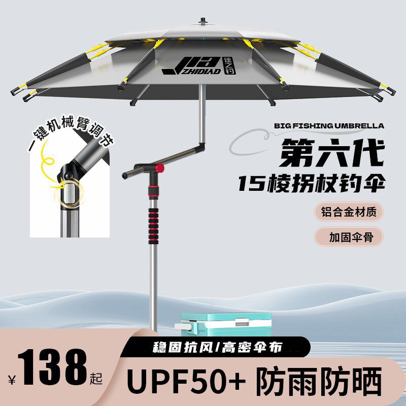 渔之源钓伞2025新款机械臂钓鱼伞户外万向拐杖款钓鱼伞防晒垂钓伞