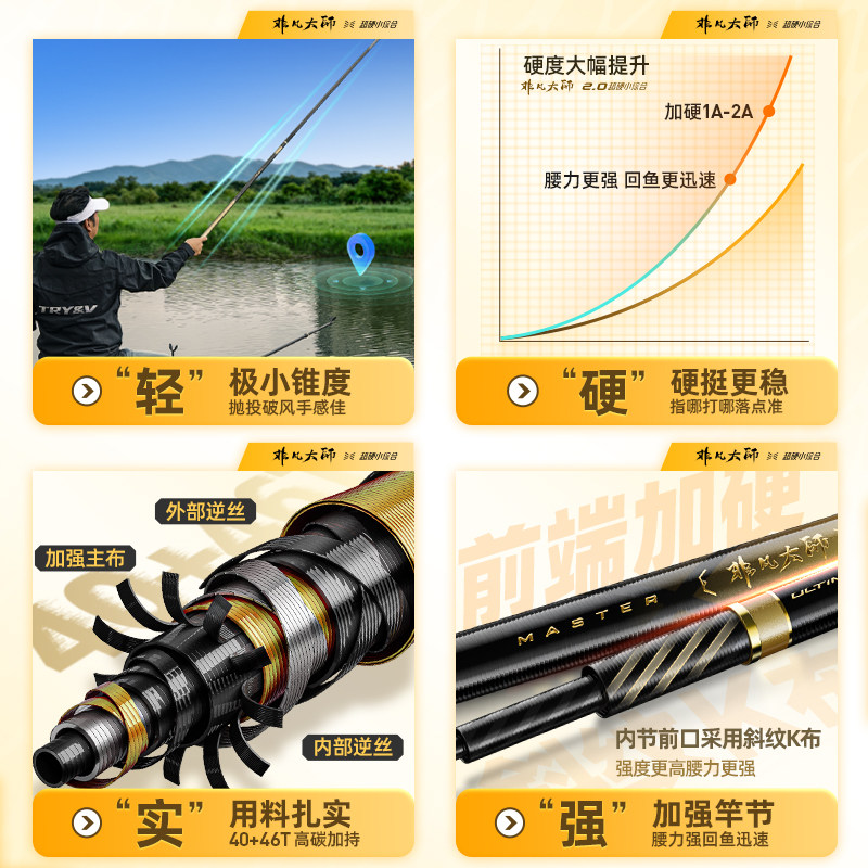 天猫创威5H非凡大师二代鱼竿手杆超轻超硬钓鱼竿极轻小综合钓鱼竿鲫竿