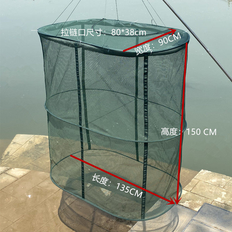 淘宝双层加粗加厚大口径网兜鱼箱捕鱼网笼折叠养鱼网箱暂养笼养殖鱼护