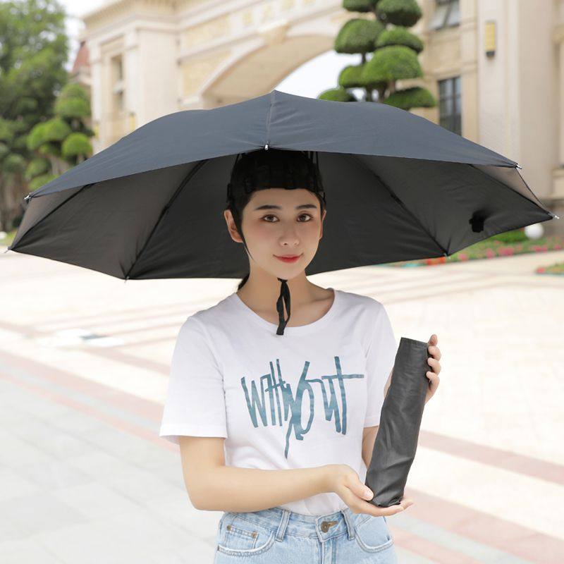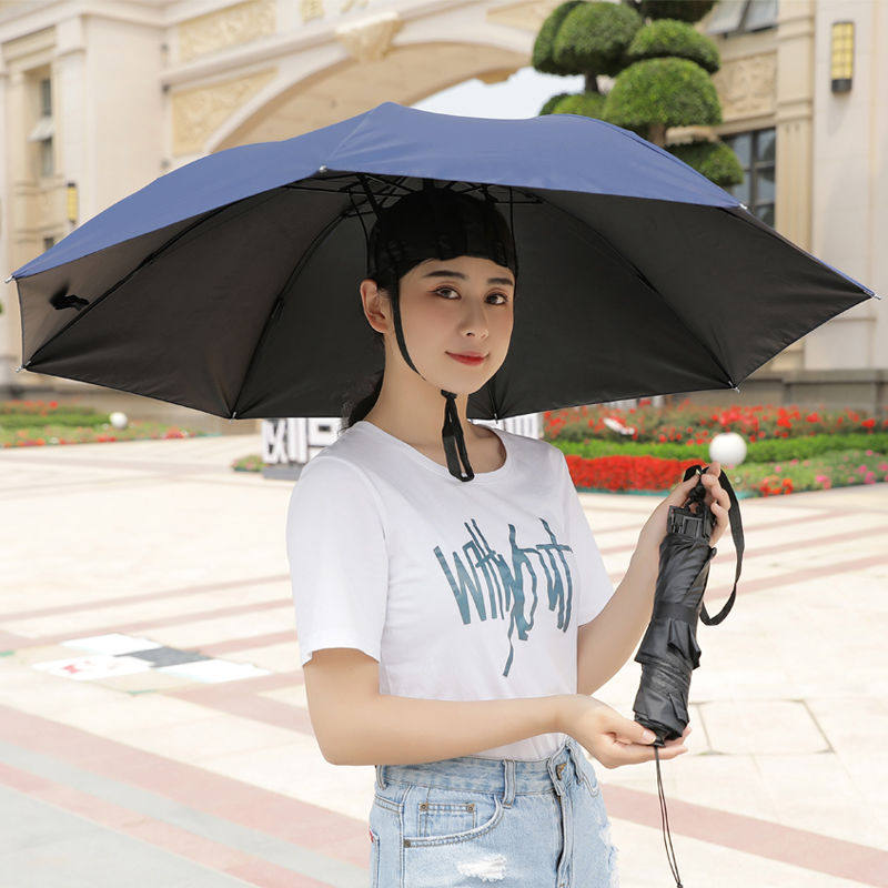 雨伞帽头戴式双层头顶带式防晒钓鱼帽伞折叠防紫外线户外遮阳斗笠