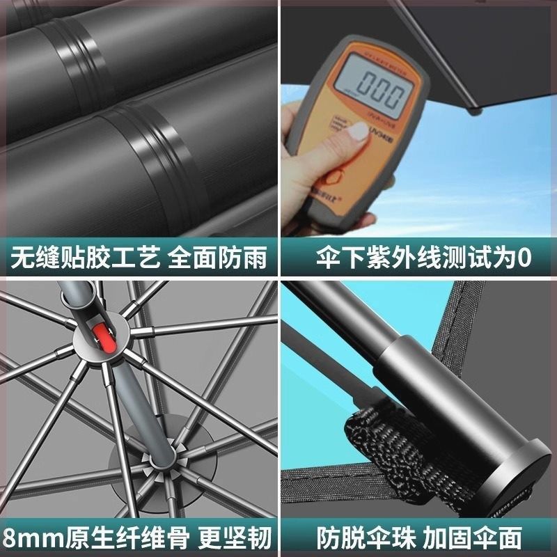 中逵钓鱼伞大钓伞新款防暴雨可调节万向拐杖不锈钢黑胶防晒垂钓伞