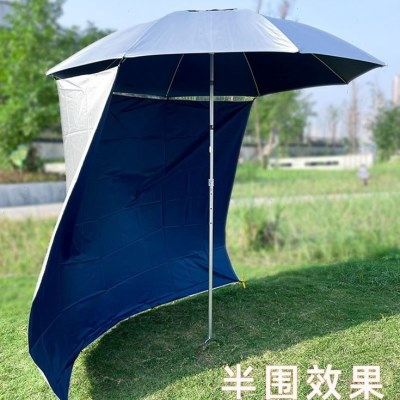 钓鱼伞围布万向钓鱼遮阳伞是一款专为户外垂钓和露营设计的多功能遮阳防雨装备。采用高强度骨架与防水防晒面料,有效抵御紫外线和大雨侵袭。独特的万向调节设计,可360°自由旋转并多角度倾斜,轻松应对不同风向与日照方向。配备防风拉绳与地钉,稳固性强,适合湖边、河边等开阔环境使用。伞面宽敞,搭配可拆卸围布,形成半封闭空间,防蚊虫、挡风沙,提升户外舒适度。轻便易携,安装简易,既是遮阳伞,也可作临时防雨棚或露营帐篷伞,是钓鱼爱好者和户外玩家的理想伴侣。