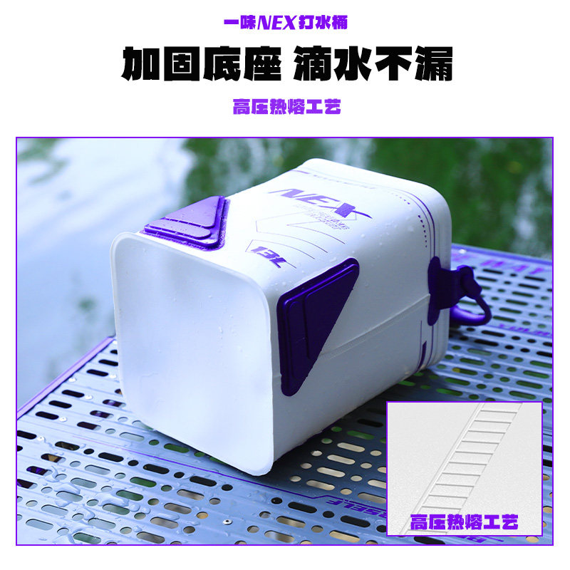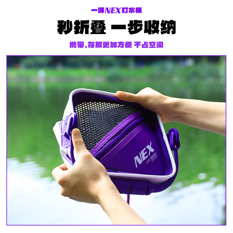 一味NEX打水桶是一款专为路亚爱好者设计的新品装鱼桶,采用加高加厚设计,容量更大、结构更稳固。桶身选用高强度环保材质,抗摔耐磨,底部加强承重,可轻松容纳活鱼、冰块及渔具。创新可折叠设计,不用时可压扁收纳,节省空间,便于携带。配备密封式带盖,有效防止鱼跳出和异味外溢,提手加宽加固,手提舒适不勒手。无论是溪流、湖泊还是海钓,一味NEX打水桶都能满足户外垂钓的实用需求,是路亚玩家出行的理想伴侣,兼顾便携性、耐用性与功能性。