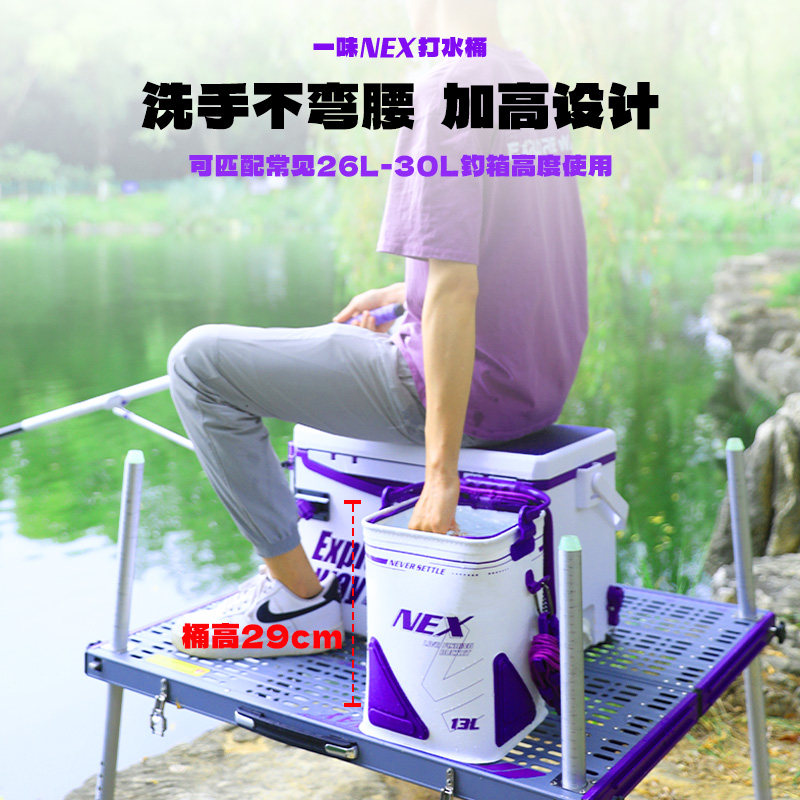 天猫一味NEX打水桶新品加高加厚可折叠手提路亚带盖装鱼桶