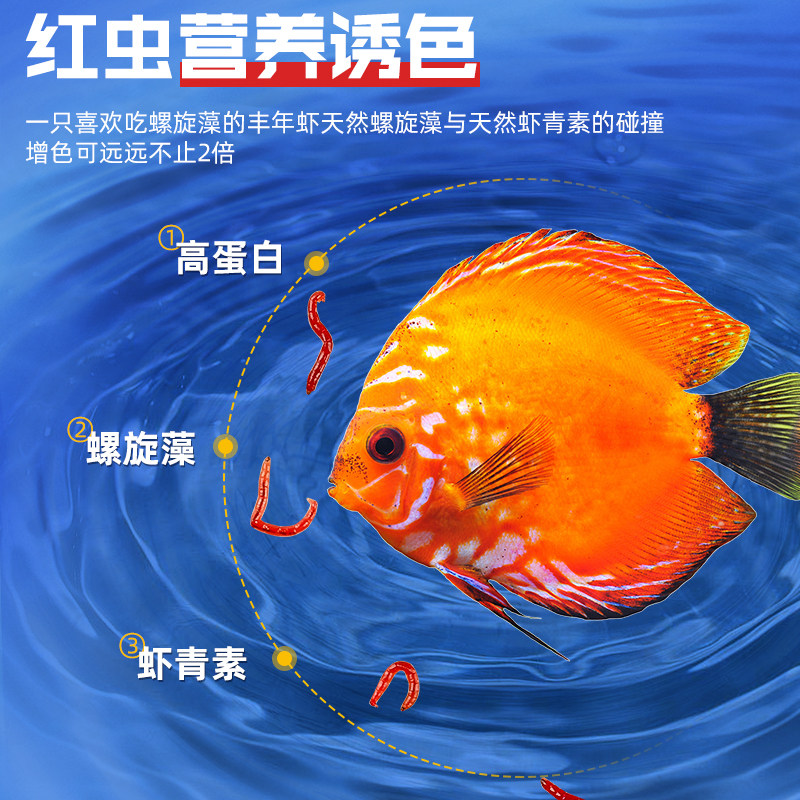 淘冻干红线虫饵料鱼食水蚯蚓粘贴片鱼粮红丝虫燕鱼七彩孔雀热带饲料