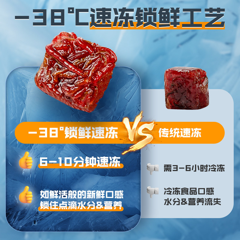 本品专为观赏鱼设计,精选红虫、冰冻红线虫、丰年虾等多种优质天然食材科学配比,富含高蛋白、维生素及必需氨基酸,有效促进鱼类生长、增强体色鲜艳度。特别适用于六角恐龙、锦鲤、兰寿等观赏鱼,易消化吸收,减少残饵污染水质。冷冻工艺锁住营养,保持食材新鲜活力,提升鱼儿摄食兴趣。投喂简便,解冻后即可使用,是提升观赏鱼健康与活力的理想饲料。长期使用可增强免疫力,让爱鱼活力充沛、色彩亮丽,为您的水族世界增添生机与美感。