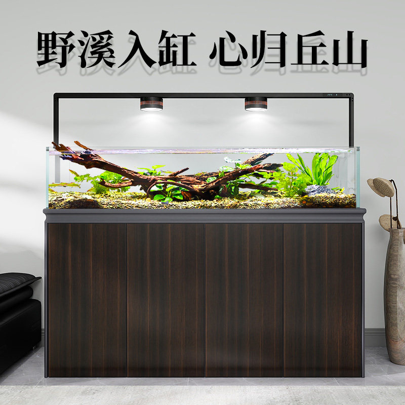 天猫森森新款鱼缸客厅家用溪流缸超白玻璃原生造景大型底滤极窄侧溢流