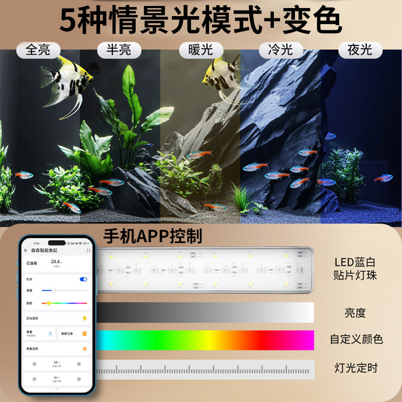 天猫森森智能鱼缸超白玻璃家用桌面客厅懒人免换水过滤制氧一体机新款