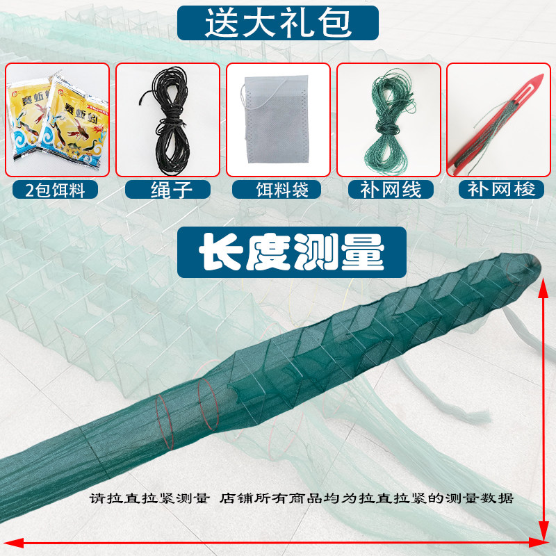新款虾笼地网渔网捕鱼笼抓泥鳅黄鳝螃蟹笼大号折叠加厚捕鱼网虾网