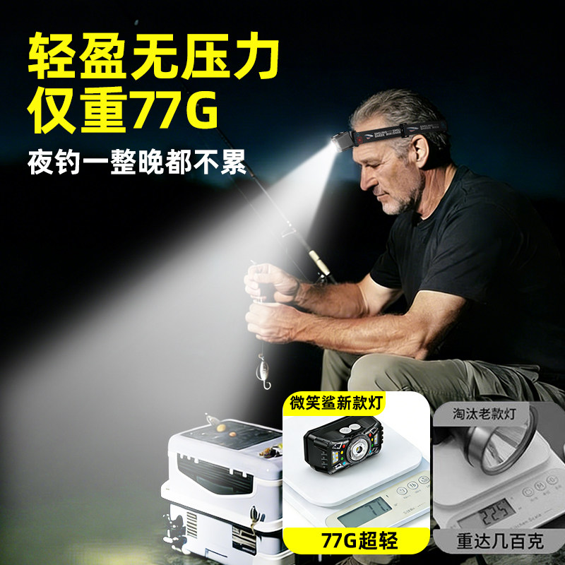 天猫微笑鲨2026新款头灯强光充电超亮钓鱼专用头戴式超长续航夜钓登山