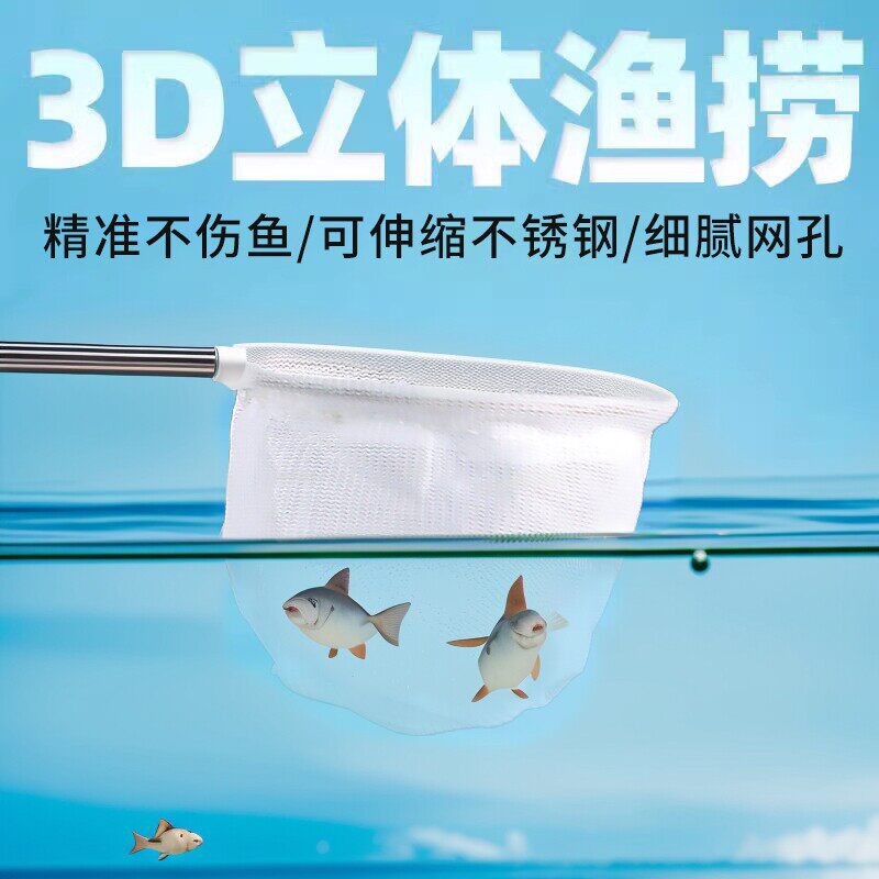 淘宝不锈钢可伸缩捞鱼网水族用具海水鱼热带观赏鱼3D鱼捞抄网兜鱼缸捞